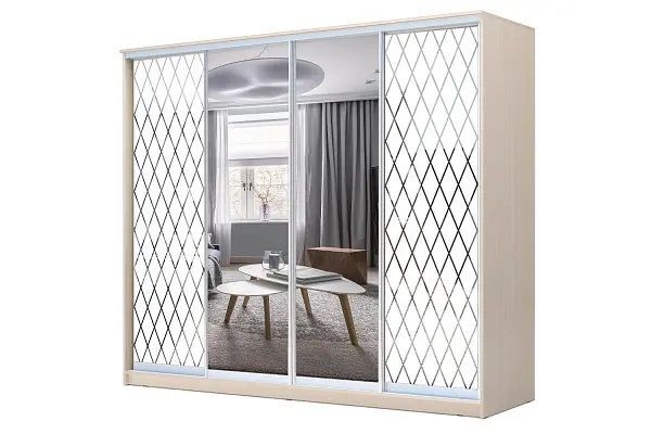 Фасад: 2 двери Зеркало + 2 двери с пескоструйной обработкой